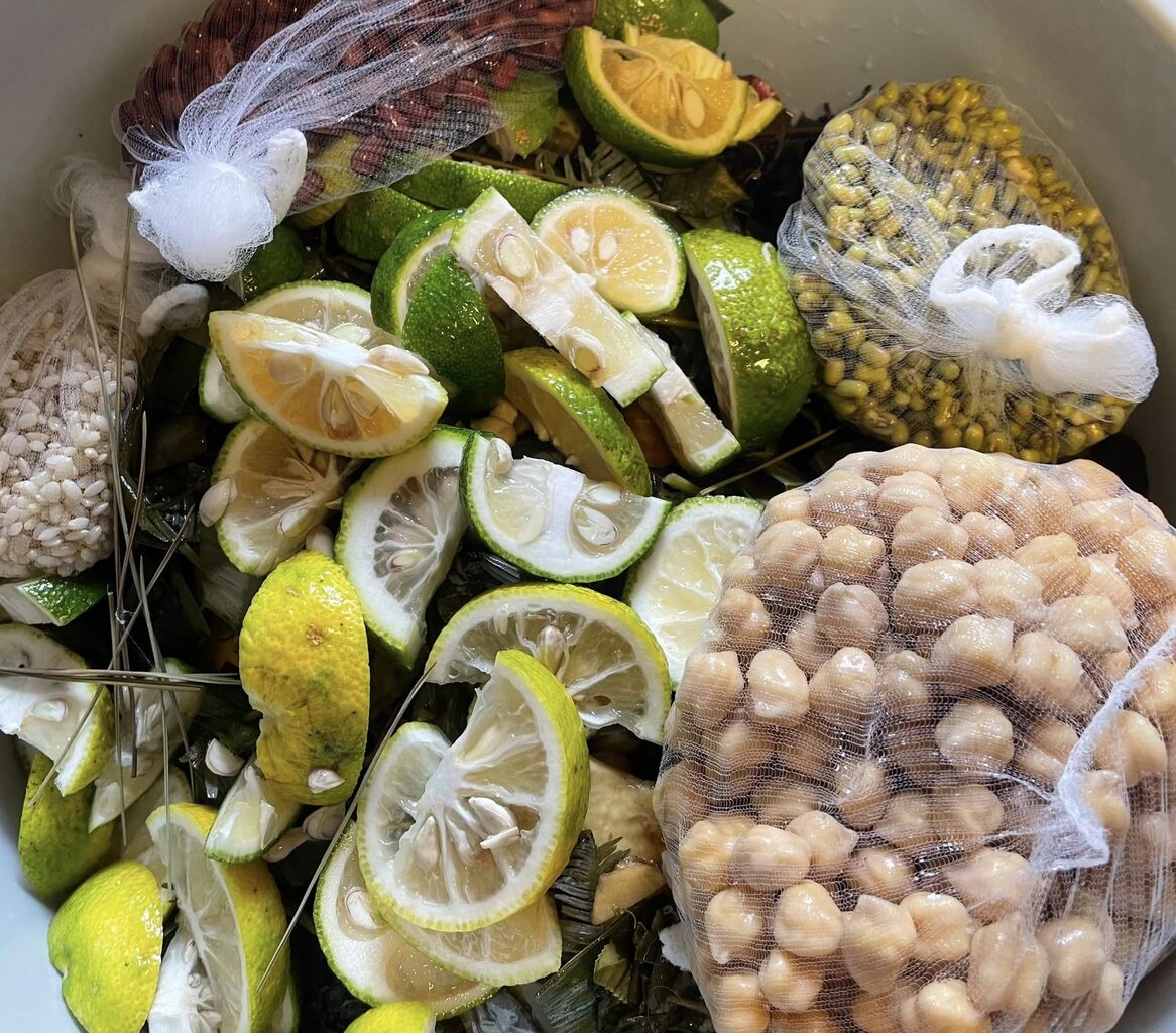 秋の酵素には 豆や穀類、柚子をトッピングして 作ります