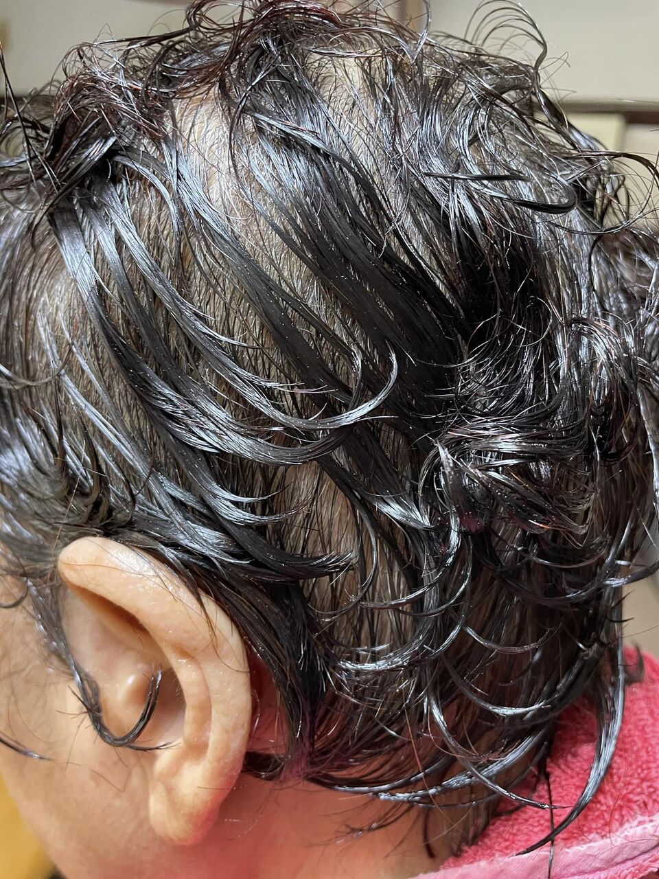 1回目のヘナはまだヘナが入りきらず パーマも取れたかも