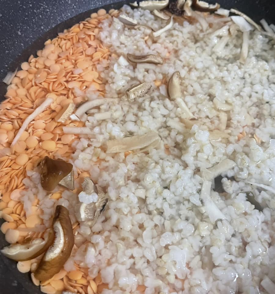 イイ感じに出来上がってきたら たっぷりと 白湯で戻すだけのをトッピング