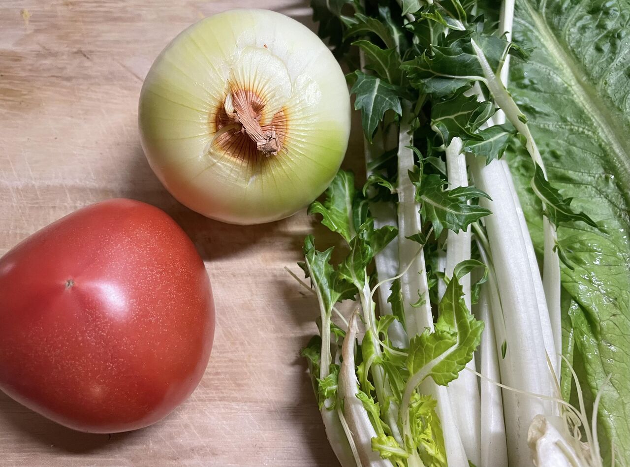 いつもは冷蔵庫の残り野菜たち(早く食べて欲しいよ と言っている野菜や根菜)